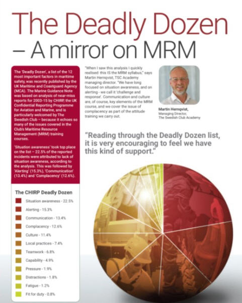 31 May – The ‘Deadly Dozen’, a list of the 12 most important factors in maritime safety, was recently published by the UK Maritime and Coastguard Agency (MCA).