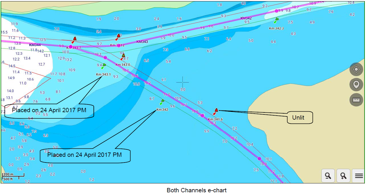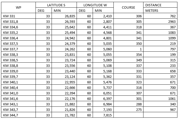In the chart below, provided by local surveyors Marine Expert SA, the old and the new channel is now properly marked. In the Notice to Mariners, all recent changes in the channel and marks from Recalada towards up river Parana is marked.