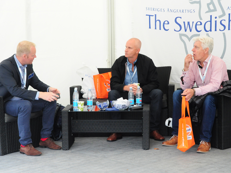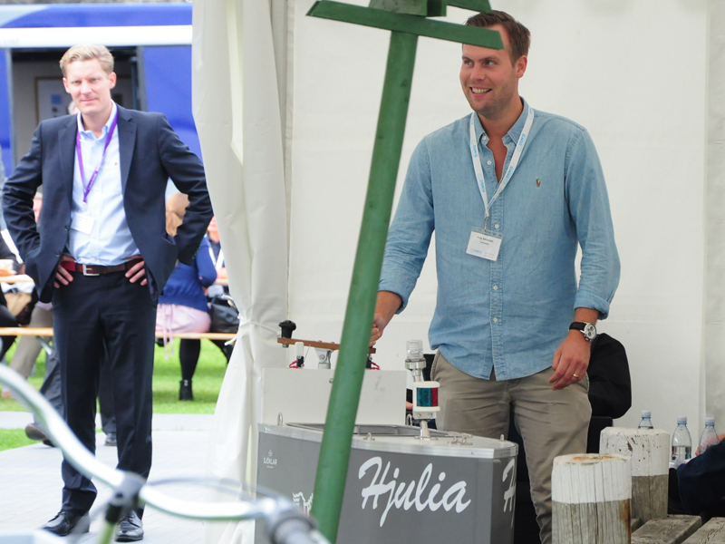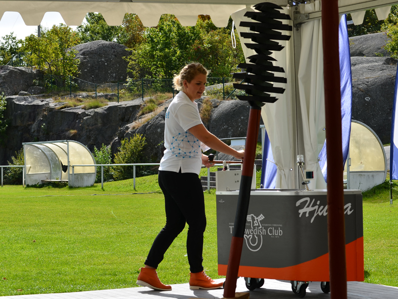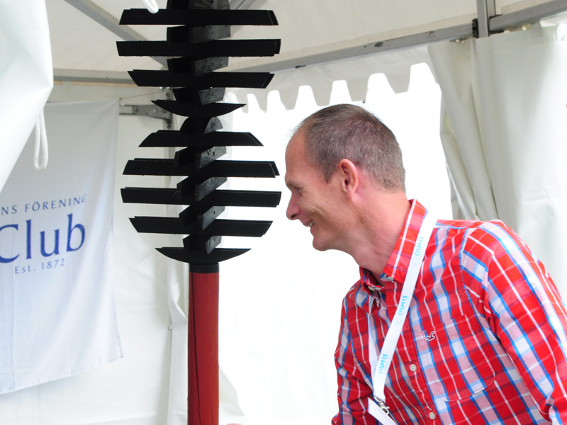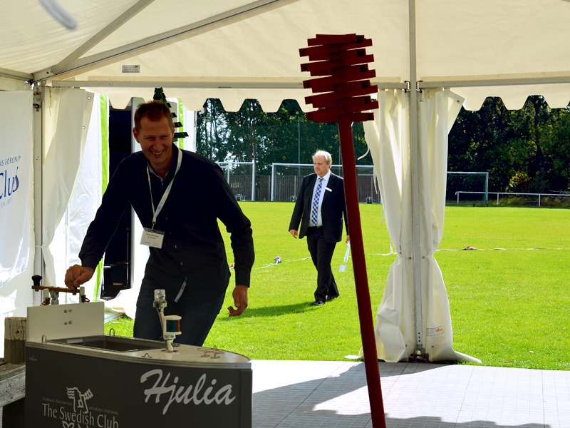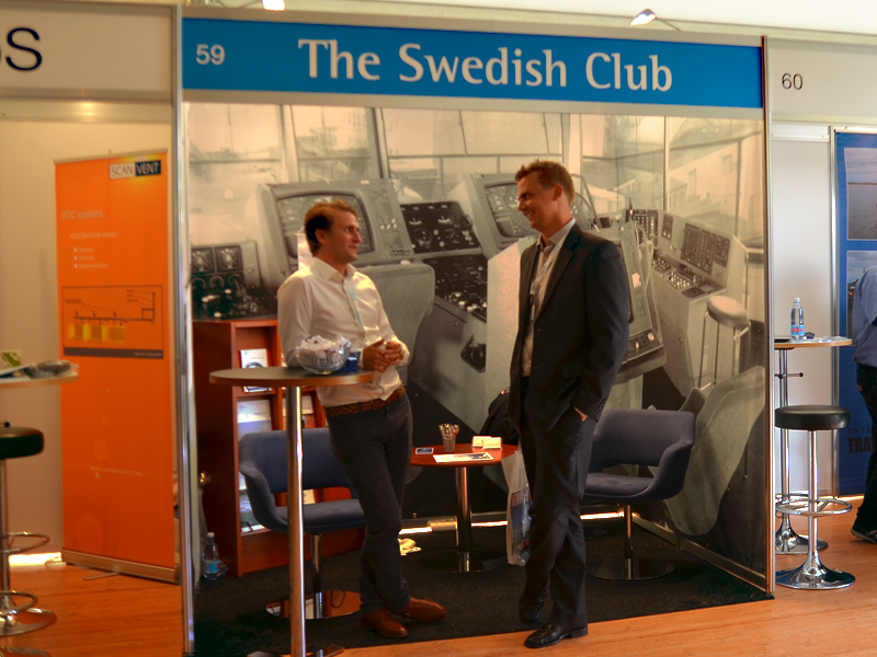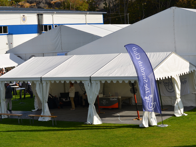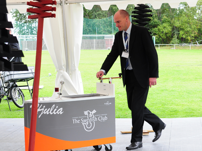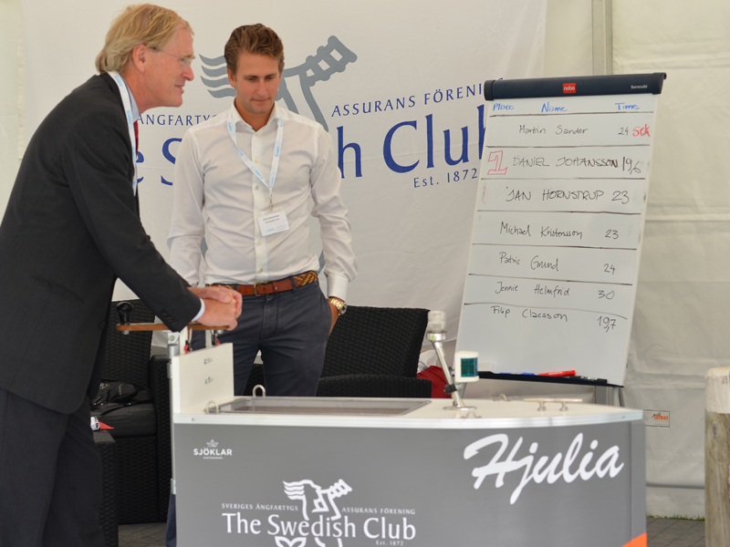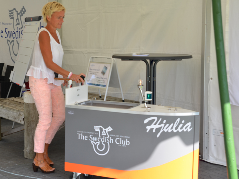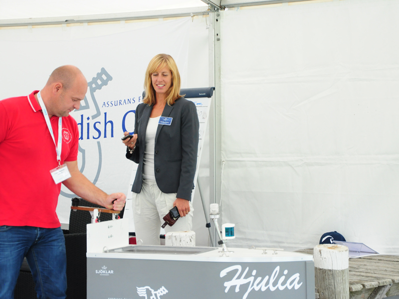 The Swedish Club was, of course, one of over 160 exhibitors, represented with an exhibition stand as well as a big tent outside. In the tent, people could navigate with a small land going education boat, Hjulia, borrowed from Sjöklar Kustakademi. Several tried to navigate through a course on the shortest time, but only one could claim the prize.